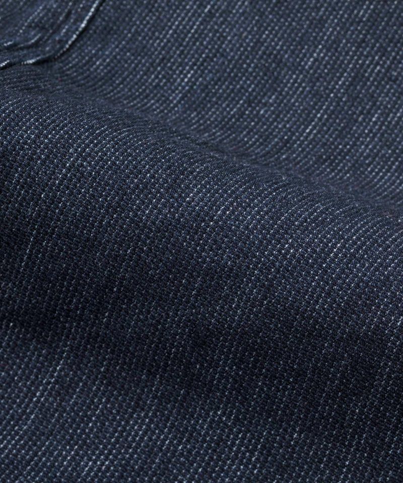インディゴ染めした糸で織り込んだピケ生地を使用したジャケット。