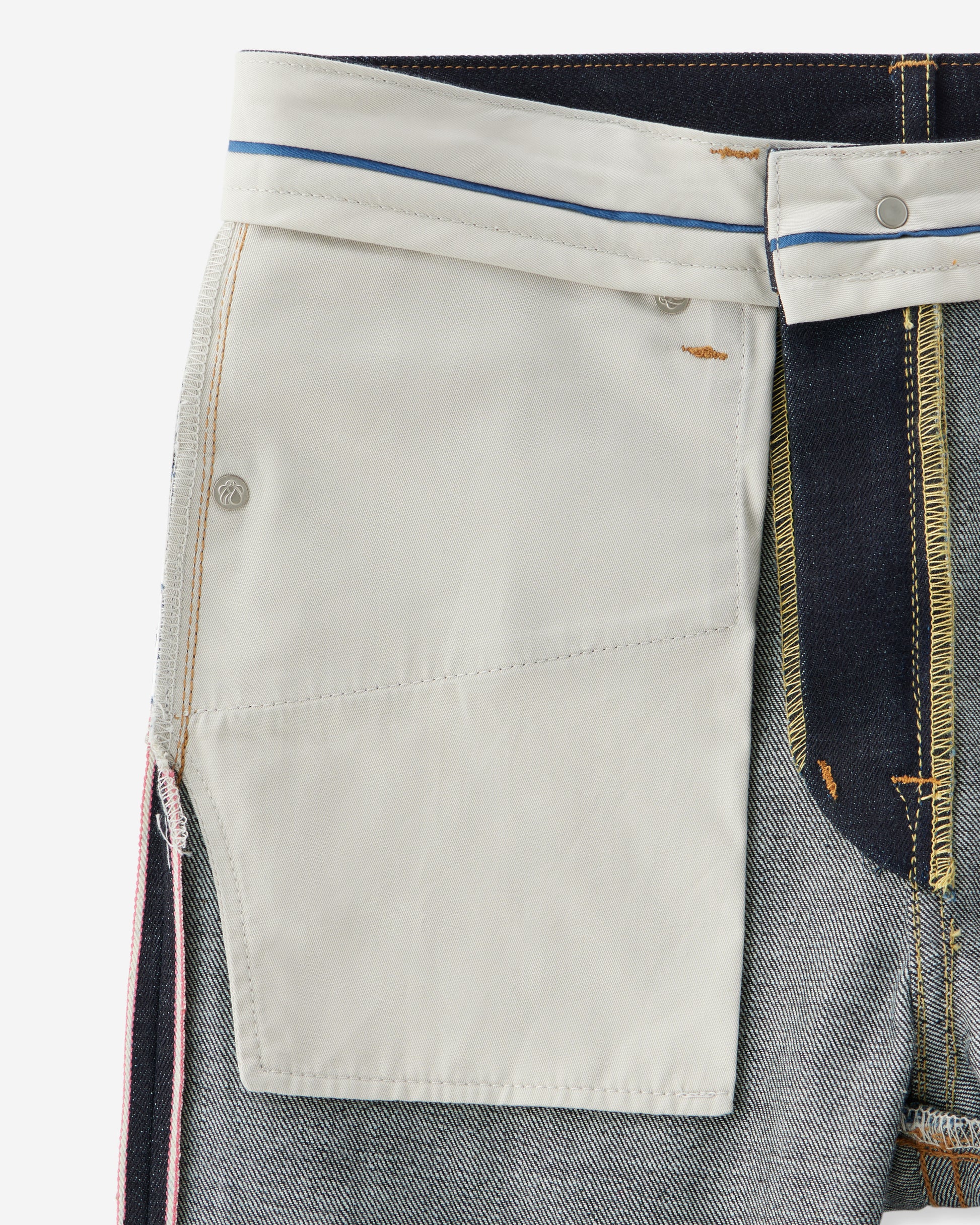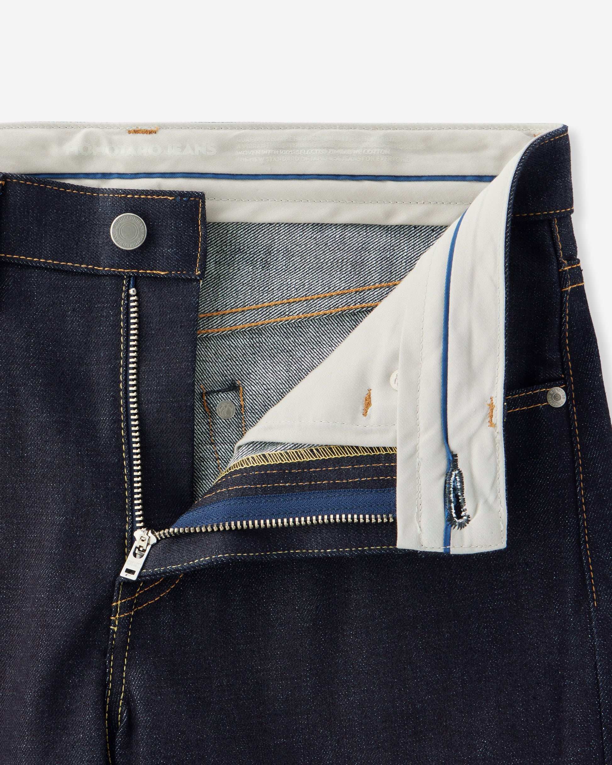 経糸(たていと)のインディゴ色を際立たせるために、デニムの構成を見直し、緯糸(よこいと)に細い糸を選定。また、洗濯後の縮みを限界まで抑える加工を施すことで、リジット(未洗い)のデメリットを軽減。