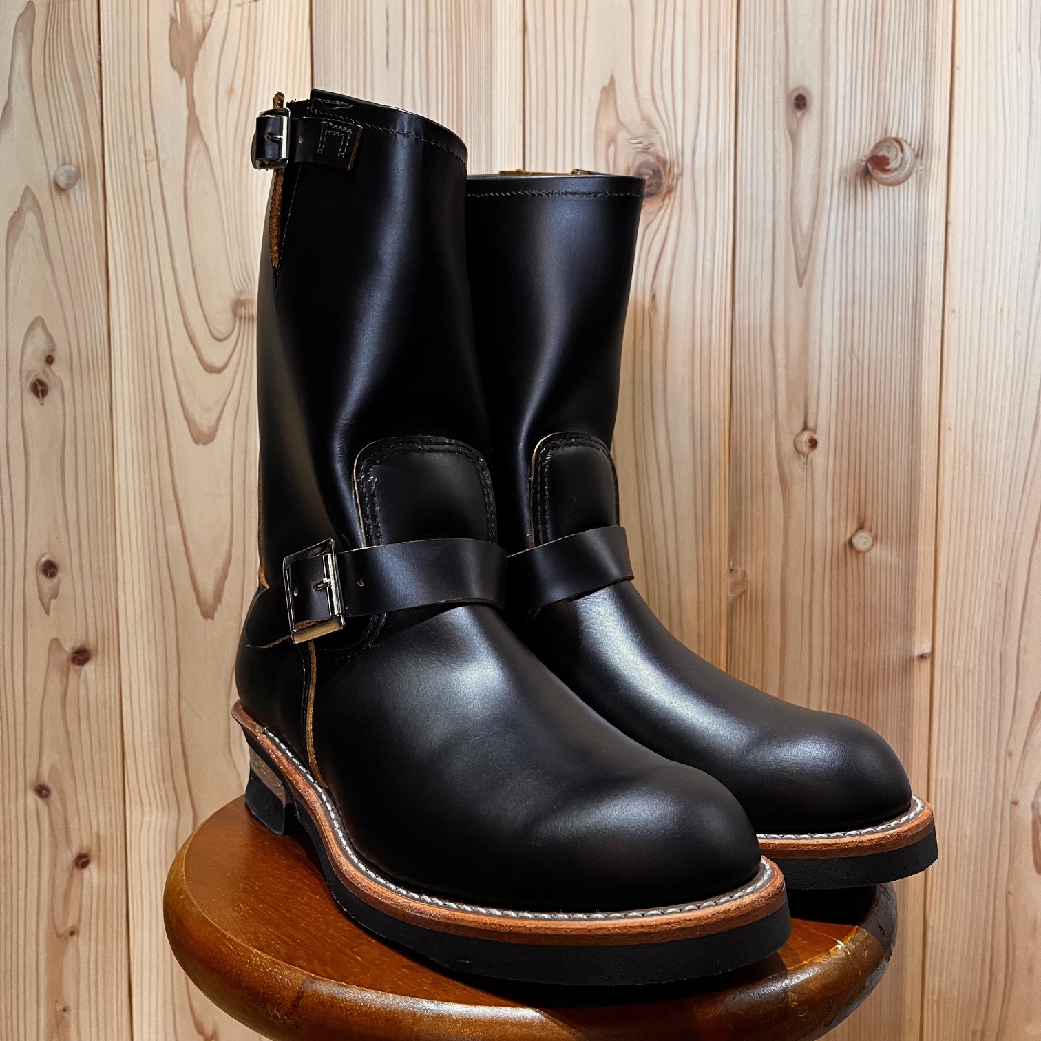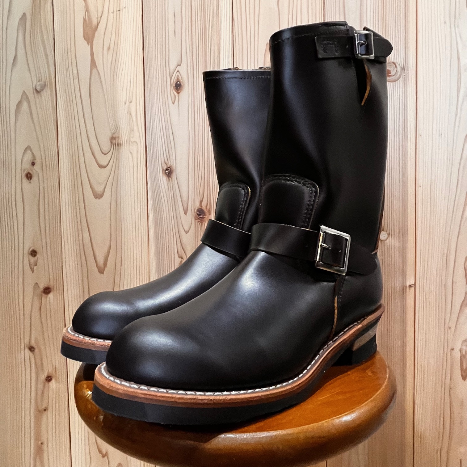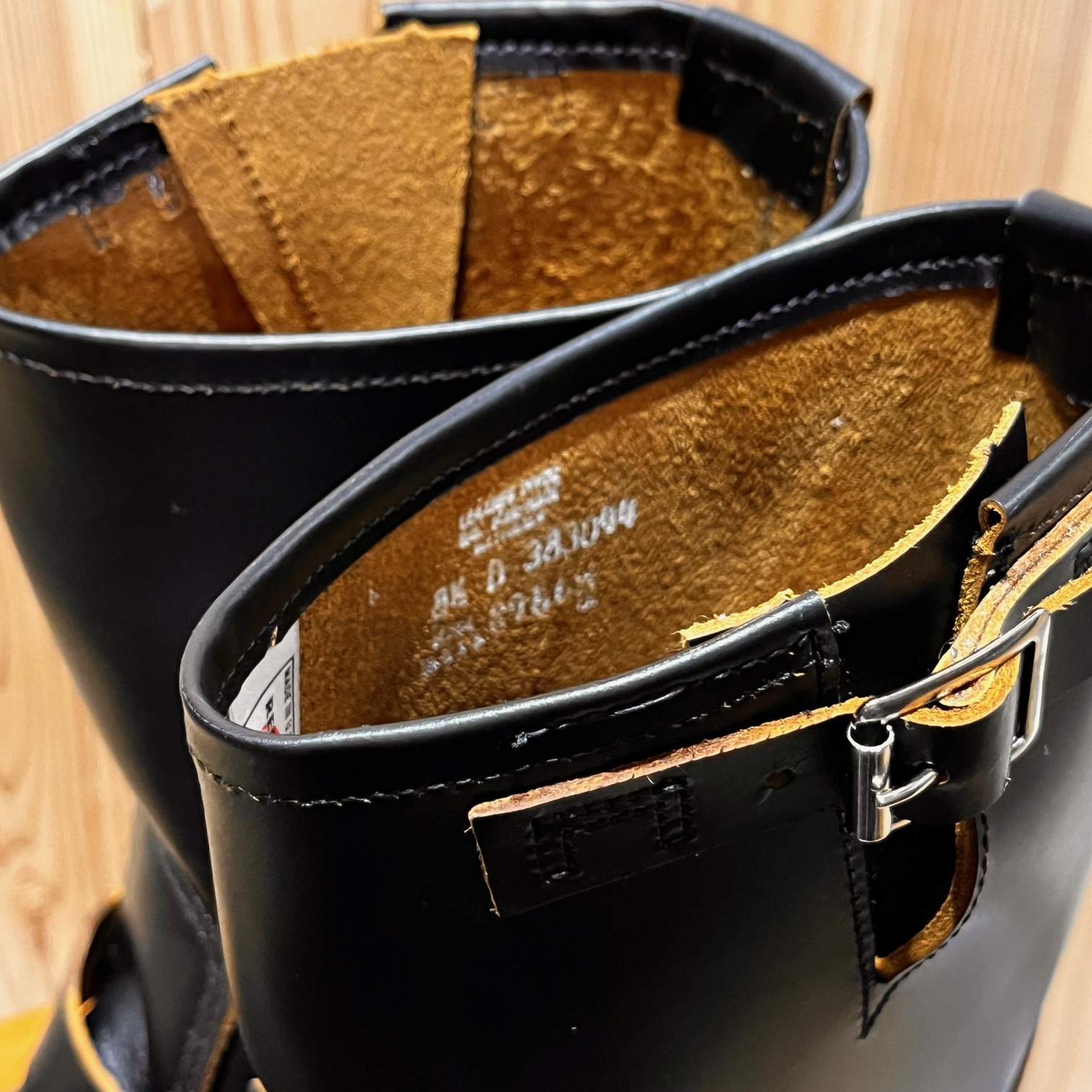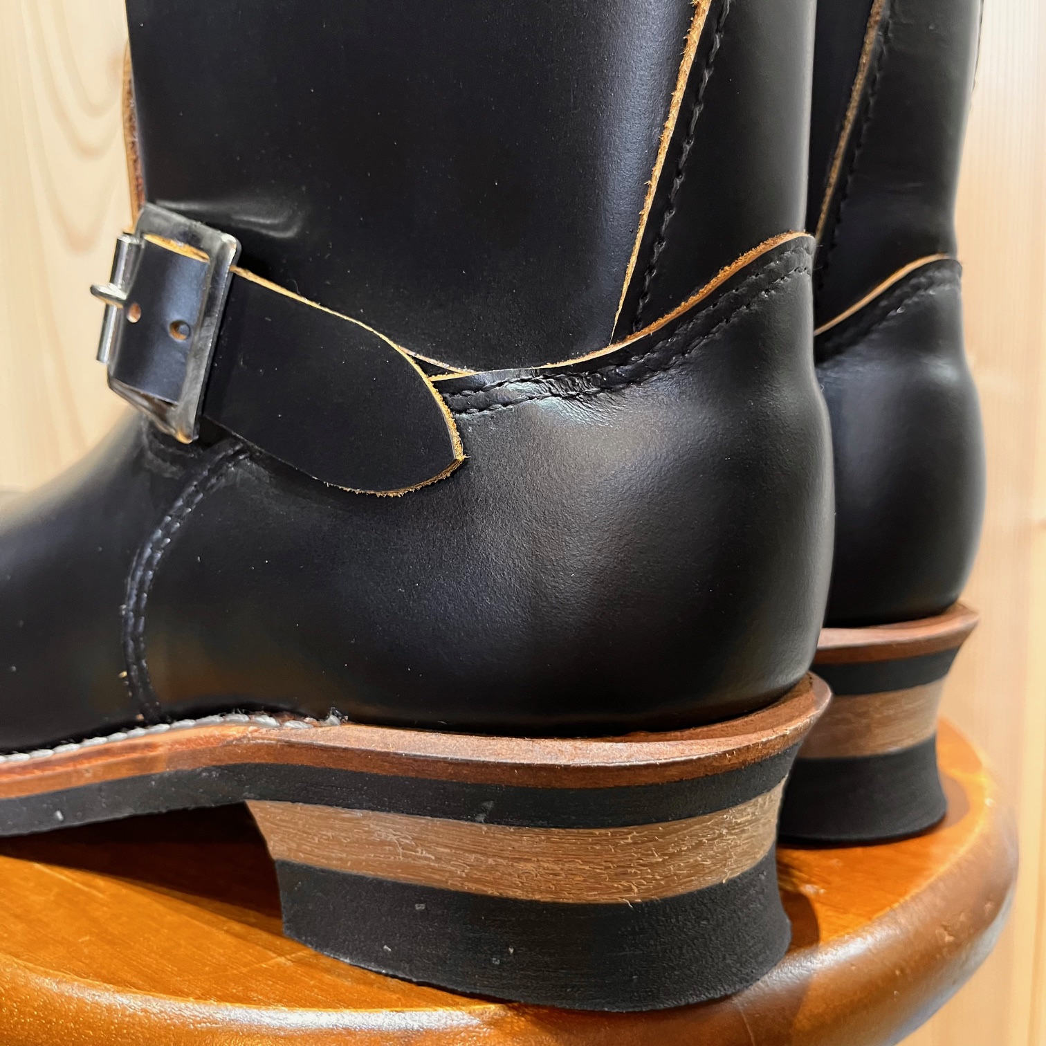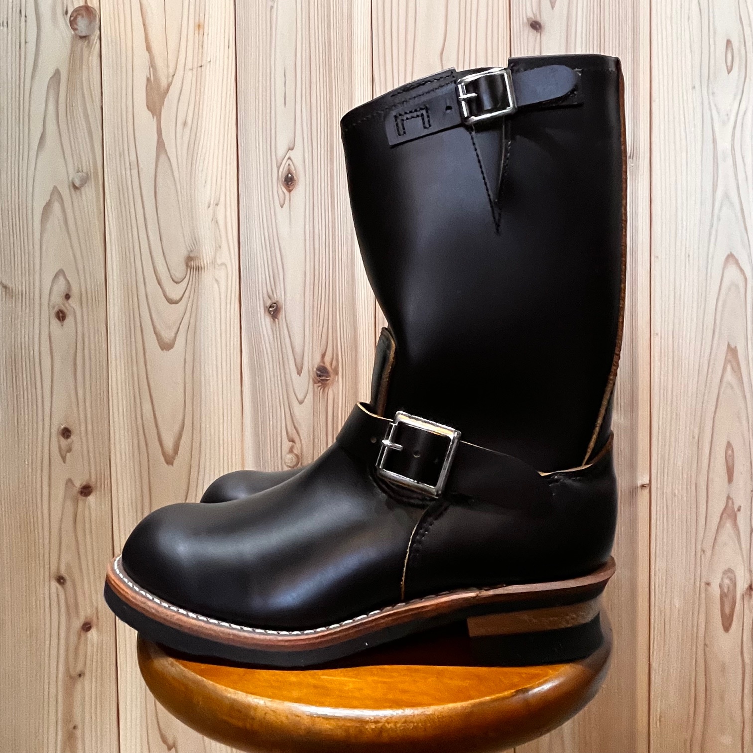 茶芯レザーの「ブラック・クロンダイク」に足首部分が絞られた「ストーブパイプ」仕様。