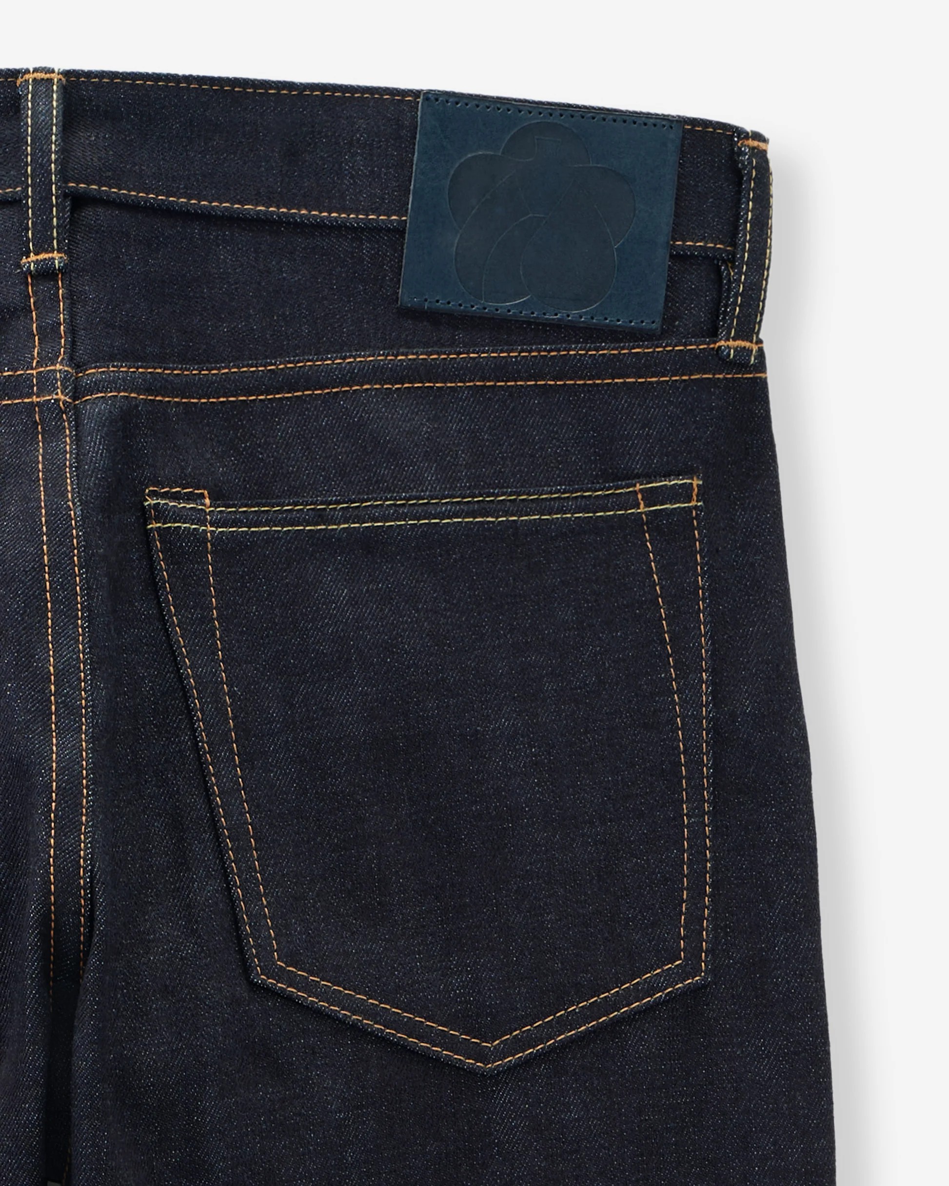 経糸(たていと)のインディゴ色を際立たせるために、デニムの構成を見直し、緯糸(よこいと)に細い糸を選定。また、洗濯後の縮みを限界まで抑える加工を施すことで、リジット(未洗い)のデメリットを軽減。