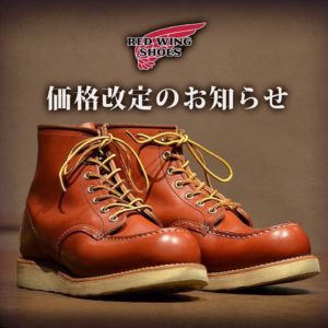 レッド・ウィング・ジャパンの公式サイトでも告知されましたが、来月1日より一部製品の価格が改定されます。